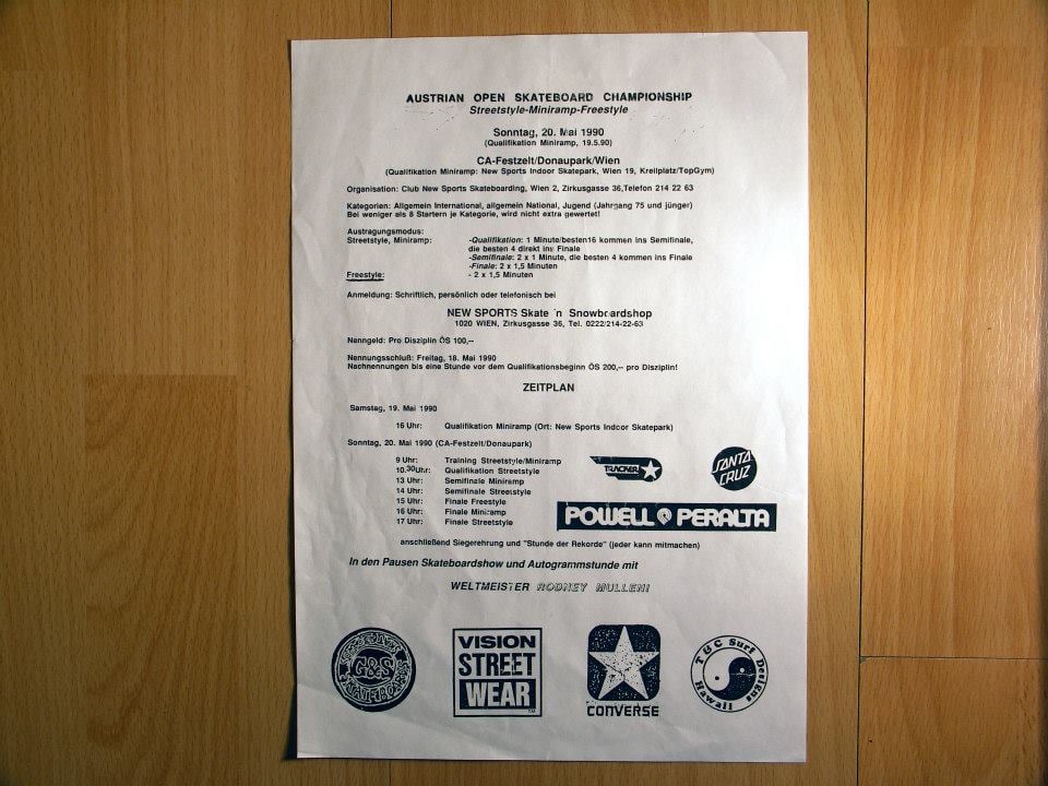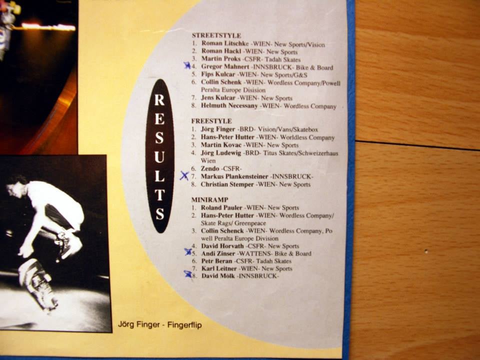 Outlook, DER damalige Skateboardvertrieb in Österreich, scheint diesen Contest seinerzeit veranstaltet zu haben. in den Ergebnislisten findet sich das Who-Is-Who der österreichischen Skateboardlegenden. Und auch die Innsbrucker waren stark vertreten - praktischerweise gut kenntlich gemacht durch ein Kreuzerl vor dem Namen :-)