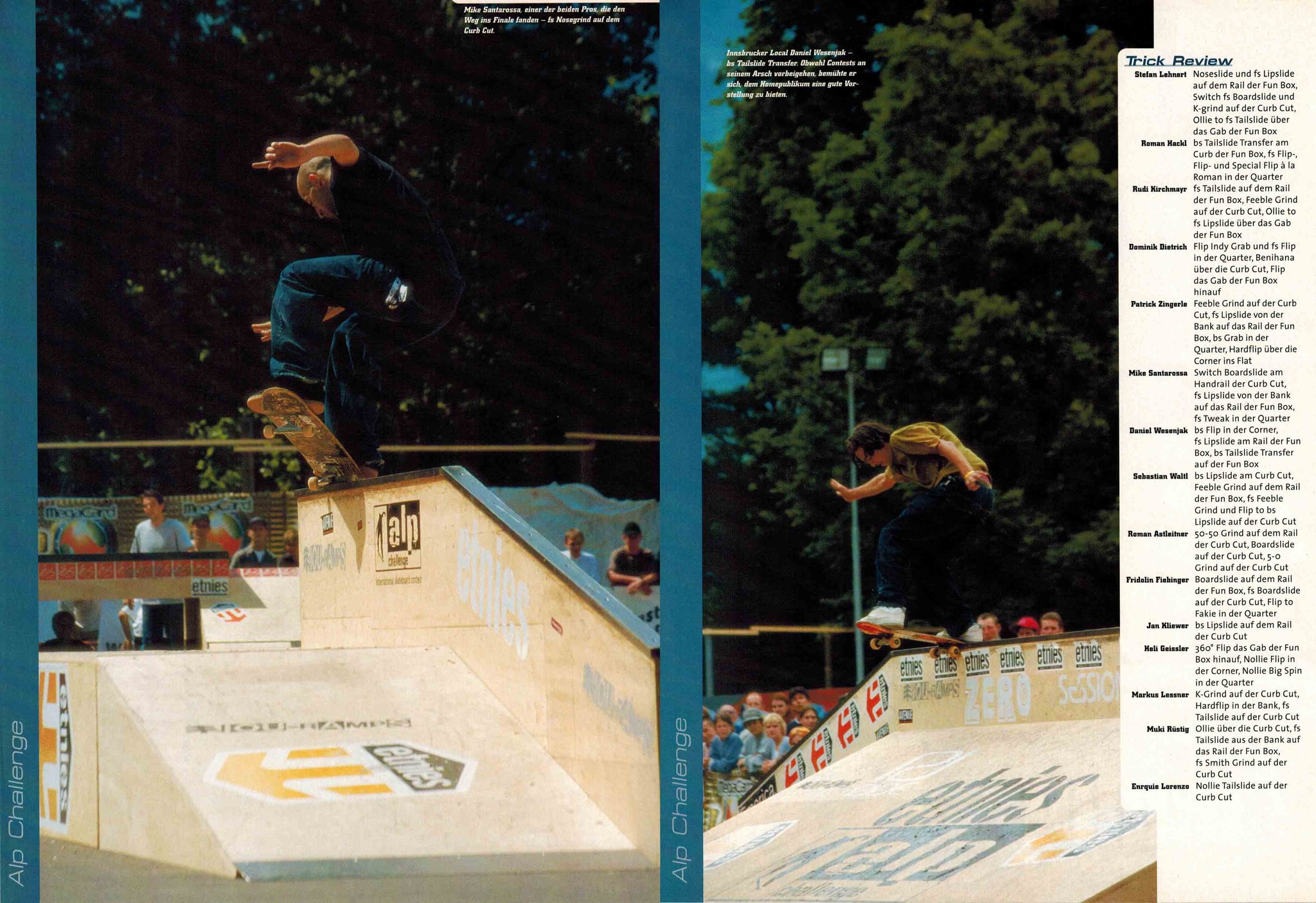 sowie die beiden wohl nach wie vor größten heimischen Skate-Events der Geschichte, Alp Challenge und Air & Style Skate. Und auch dem Nachtleben ist eine Seite gewidmet.