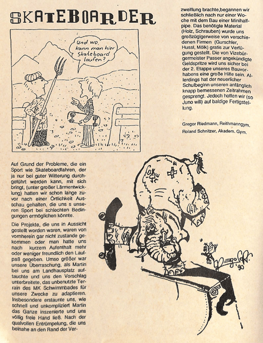 Erst aufgrund der Recherchen des Subkulturarchiv-Innsbruck haben wir erfahren, dass die MK-Skatehalle 1990 entstanden ist, wie im Beitrag aus der MK-Zeitung März 1990 geschildert.